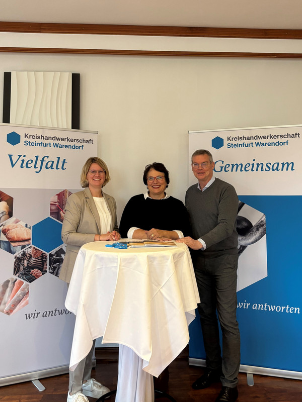 Ann-Kristin Erdmann und Alfred Engeler von der Kreishandwerkerschaft Steinfurt Warendorf hoben hervor: „Rund 70 % der Betriebsinhaber in den Kreisen Steinfurt und Warendorf sind 55 Jahre und älter. Wenn wir über Fachkräftemangel sprechen, dürfen wir nicht nur die Arbeitnehmerseite betrachten. Die Nachfolgeregelungen in den Betrieben sind ein ebenso wichtiges Thema für die Zukunft der Region.“