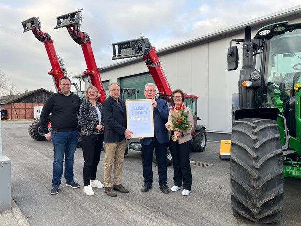 Am 22. Dezember 2025 wurde in einer kleinen Feierstunde der Goldene Meisterbrief an Herrn Albert Uennigmann überreicht. Obermeister August Mußmann und Ann-Kristin Erdmann, Bereichsleiterin Innungen KH ST WAF, gratulierten dem langjährigen Handwerksmeister und Unternehmer aus Everswinkel zu seinem herausragenden Beitrag im Landmaschinen-Handwerk.