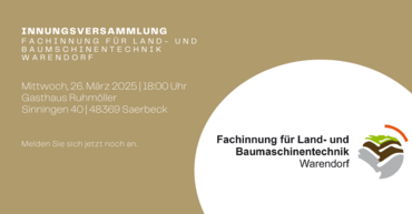 Die Innungsversammlung der Fachinnung für Land- und Baumaschinentechnik Warendorf findet statt am