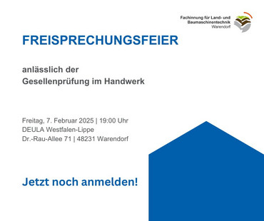 Die Fachinnung für Land- und Baumaschinentechnik Warendorf lädt zur Freisprechungsfeier 2025 ein.
